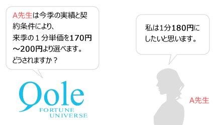 ①契約や実績等に基づいて、選択可能な単価額を弊社から各占い師へ提示