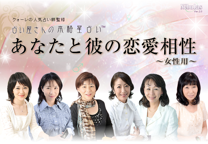クォーレオリジナルの西洋占星術による、本格的な無料相性占いコンテンツです。監修はもちろん、クォーレの腕利き人気占い師たち。