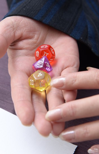 星の意味が詰まったダイス。タロットを扱う感覚で振り、ダイスの並びで占います。