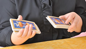 「相談者様の立場で問題を立体的にとらえ、解決の糸口を見極めるようにしています」とのこと。得意のトランプ占いは、細かく相談内容を追い、ていねいに占うことができます。