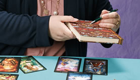 「私も占いに助けられた経験があるので今度は私がお客さまのお手伝いをする番です」というアーヤ先生。得意はタロット占い。ひとつの質問に対して核となるキーワードを見つけ出し、どんどん枝葉を広げて掘り下げ、スピーディーに答えを出してくれます。