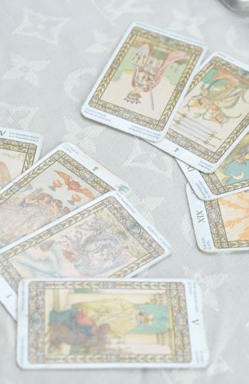 オリエンタルな雰囲気がレアな、東洋思想に則ったタロットカード。繊細な線と雅な色使いに心が安らぎます。
