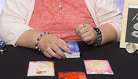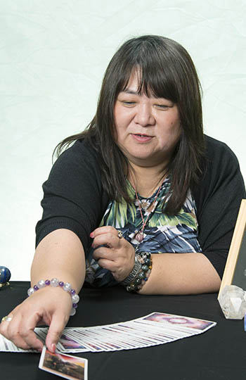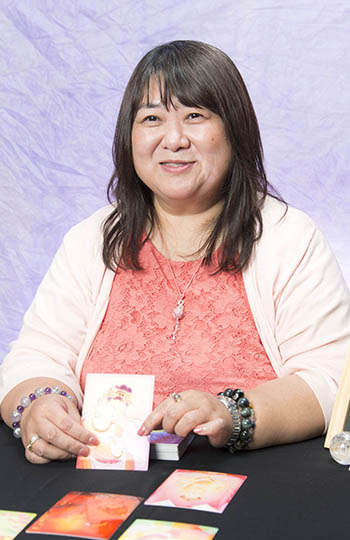 「話を聞いてもらって安心して次にすすめます、と笑顔になっていただく事」とのこと。得意のタロット占いは展開が早く、話の輪を広げてくれるので、はじめてでも相談しやすい先生です。