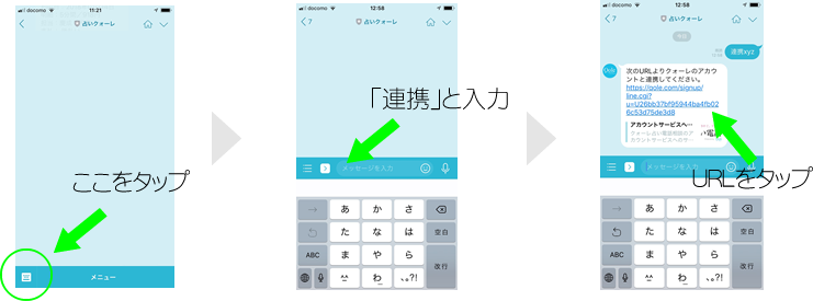 クォーレのLINE公式アカウントの「トーク」に「連携」とメッセージ入力してください。