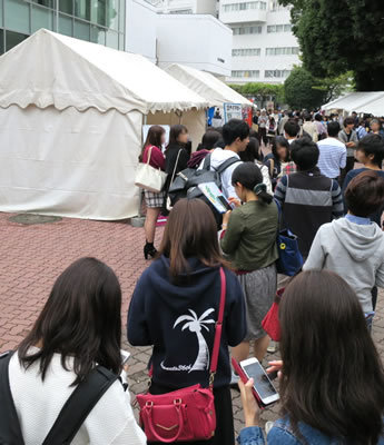 キャンパス内中央の好立地にテントをご用意いただけたこともあり、ご覧の通り終始行列の絶えない盛況ぶり。