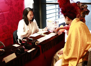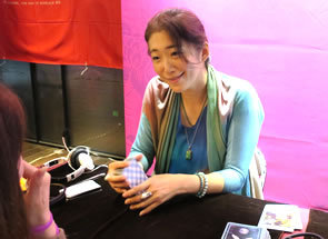 会場の2階エントランス部分で占いブースを展開、2名のプロ占い師