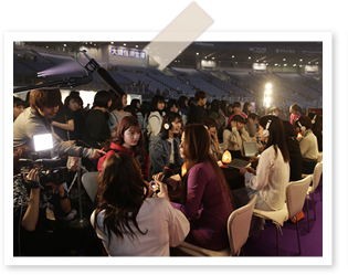 出演者が行き来するバックヤードにもブースを設営、多数の芸能人の方々にもクォーレの占いをご体験いただけました。