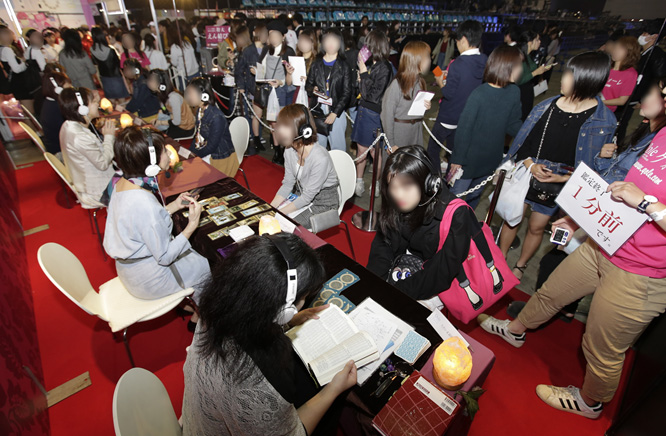 クォーレのブースにはこの日に合わせて人気占い師5名が集結、流行に敏感な若い女性たちを占いました。