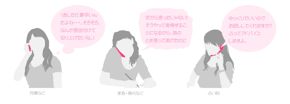 その点、占い師はあなたへの先入観はなく、あなたの話を真剣に聞く姿勢があり、問題解決できるようアドバイスしたい!と思っています。
