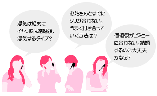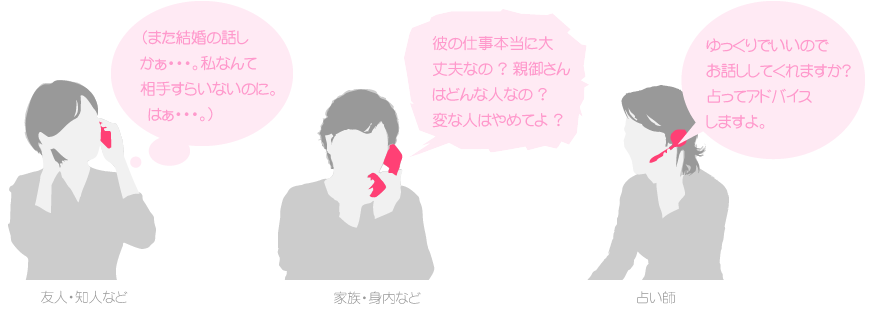 あちらを立てればこちらが立たず、結婚の悩みを全部しょい込んでいたら身体も心ももちません。こういうときこそ占いの出番。だいじょうぶ、クォーレの占い師があなたの力になります。