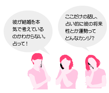 と思われる方も多いと思います。そのとおりです、「占い師に相手を決めてもらいたい」というご要望のお客さまはまずいらっしゃいません。