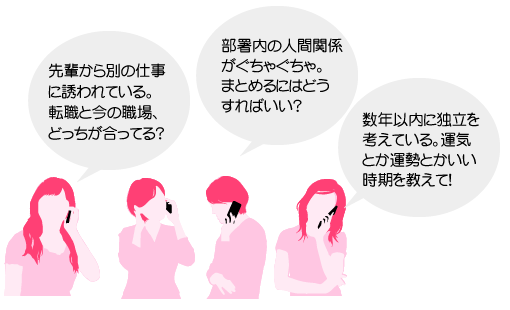 仕事は決断の連続。だからこそ占いも参考にしてみては。「運も実力のうち」と言いますし、最善の方法をクォーレの占い師といっしょに見つけましょう!