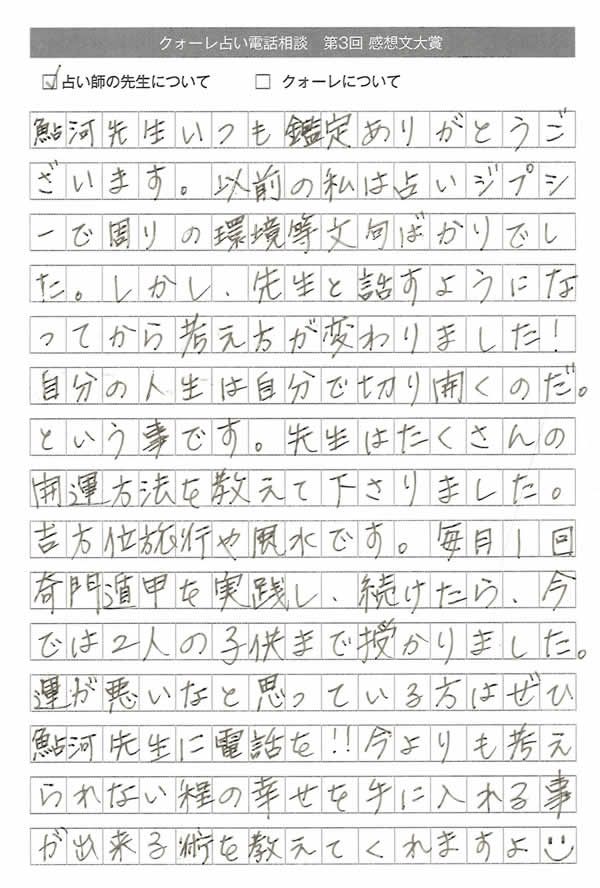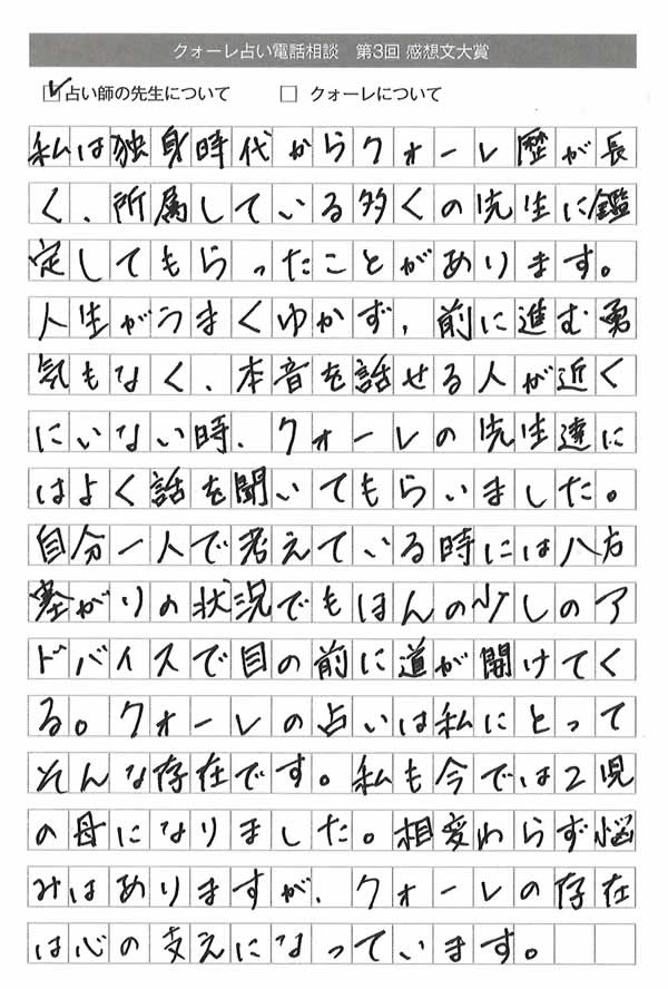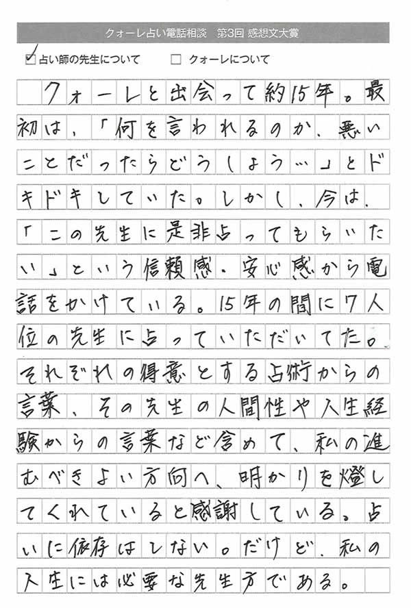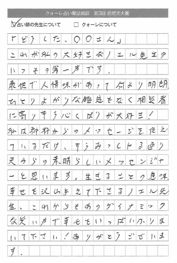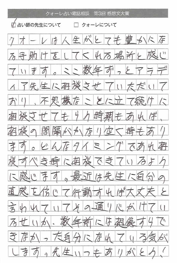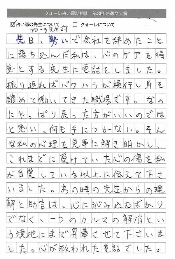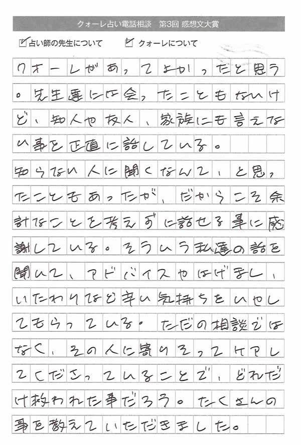 - 当たるあたらないは別として、親身になってくれているところが自分の気持ちに素直に入ってこれました。