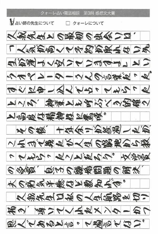 - でもやはり顔をみて話がしたいと感じました。電話だから夜おそくでも占ってもらえるのはありがたいですが。